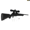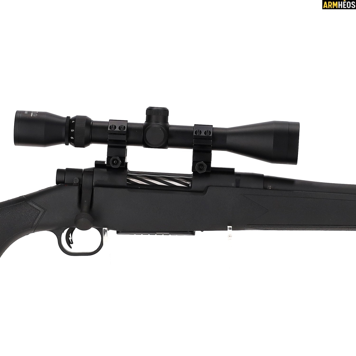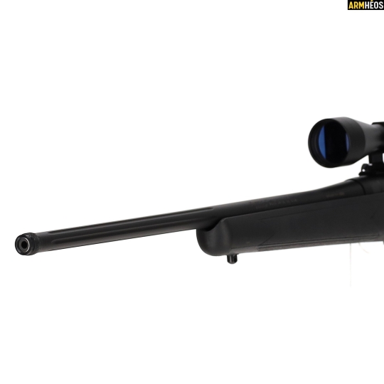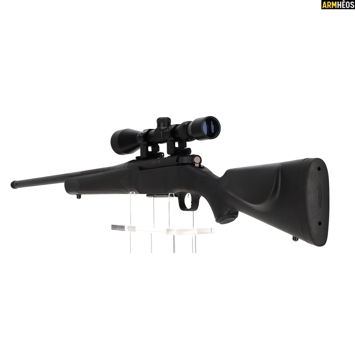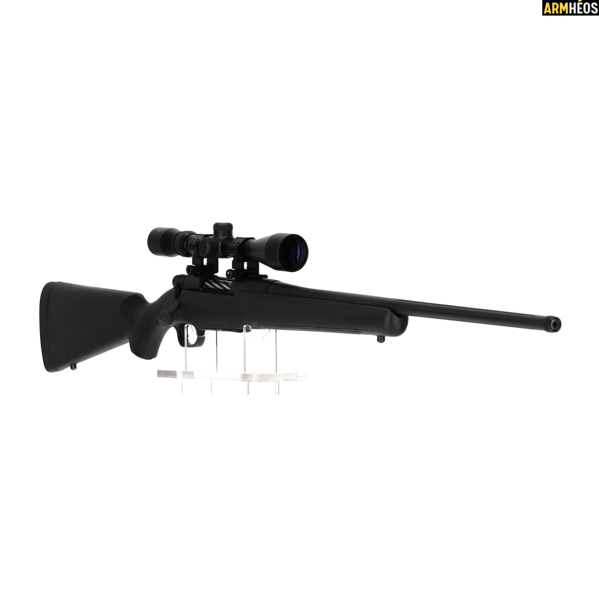 Une carabine à verrou robuste et polyvalente, livrée prête à chasser avec une lunette 3-9x40 montée. Canon fileté pour modérateur de son, rail Weaver, crosse synthétique ergonomique. Un excellent rapport qualité/prix pour la chasse au gibier moyen et aux nuisibles.