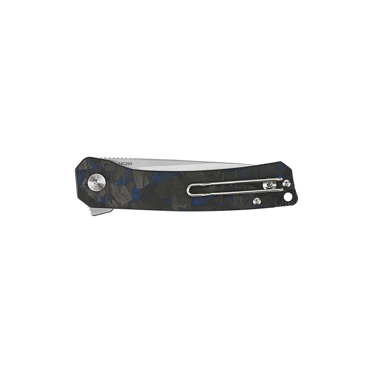 Le QSP Osprey avec manche en G10 et carbone est un couteau pliant équipé d'une lame de 82 mm en acier 14C28N, offrant un tranchant lisse et une ouverture à roulement à billes pour une manipulation fluide.