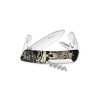 Ce modèle inclut 11 fonctions essentielles pour le quotidien ou les aventures en extérieur : une alêne coupante avec poinçon, une aiguille à chas, un décapsuleur équipé d'un tournevis n°3 et un plioir à fil, un ouvre-boîtes avec un tournevis n°1, un tire-bouchon de qualité sommelier et une pincette.