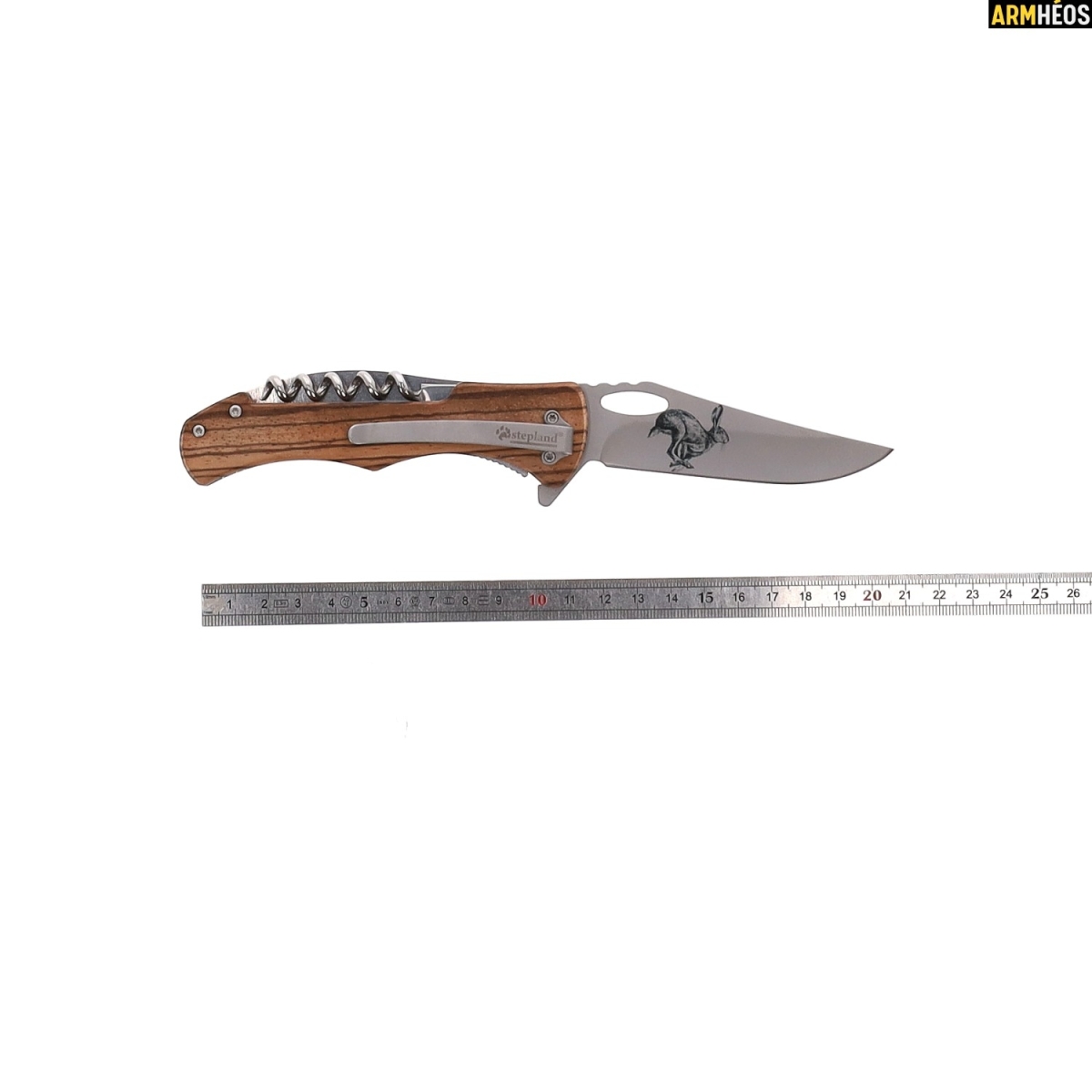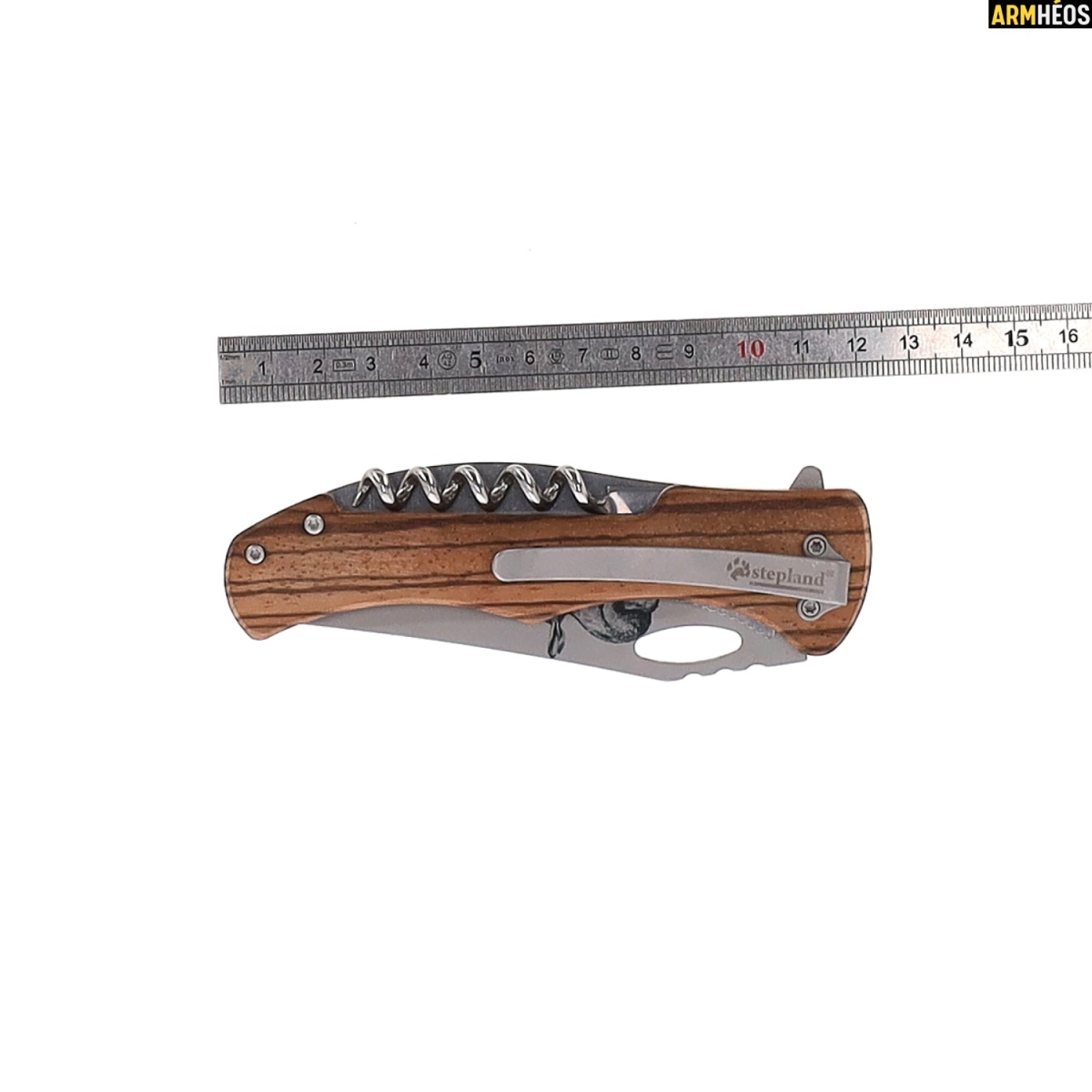 Le couteau pliant Stepland tire-bouchon sanglier est un couteau multifonction avec une lame de 8 cm pliable en acier inoxydable 420.