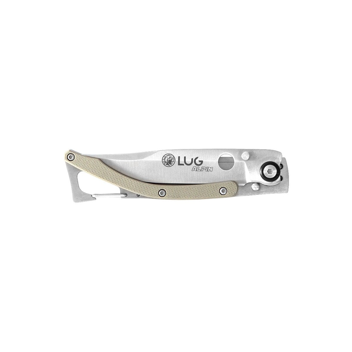 Le couteau LUG ALPIN SP1 impressionne par son élégant habillage en G10 désert, qui se distingue sur le manche en acier inoxydable de type "squelette". Ce design moderne et attrayant est complété par un mousqueton et un clip au dos, offrant une grande facilité de transport pour toutes vos aventures en plein air. La longueur du manche est de 11cm.