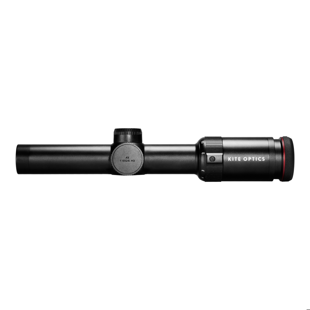 KITE OPTICS K6 1-6X24I HD - Une lunette de visée de dernière génération avec un design élégant, légère et dotée de fonctions d'éclairage intelligentes. Elle offre un excellent zoom 6x, un réticule 4A fin et lumineux, et une transmission de lumière exceptionnelle pour une acquisition rapide et précise de la cible.