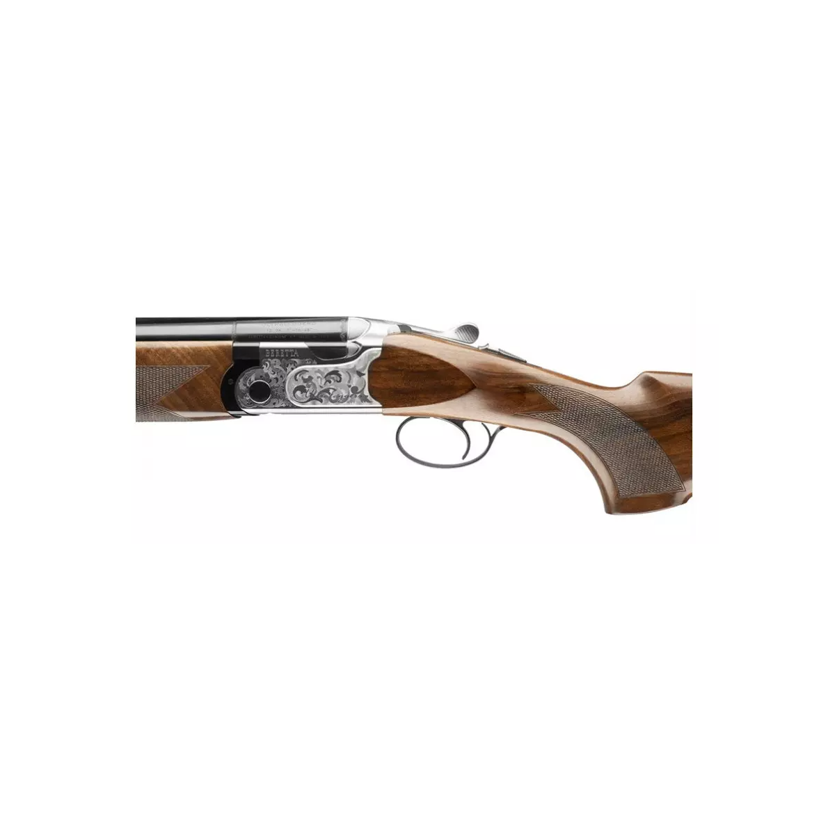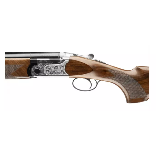 Le Beretta Ultraleggero Silver cal. 12/76 avec canon de 71 cm redéfinit le concept du fusil léger : fiabilité d’une bascule acier, inserts Technopolymère PVD argentés innovants, bois de noyer sélectionné, et canons Steelium® OBHP pour une performance de tir optimale.