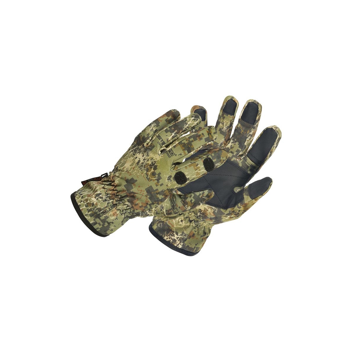 Les gants Snake en Ghost camo Snake forest sont idéaux pour la chasse, offrant protection et confort avec une conception Softshell à trois couches.