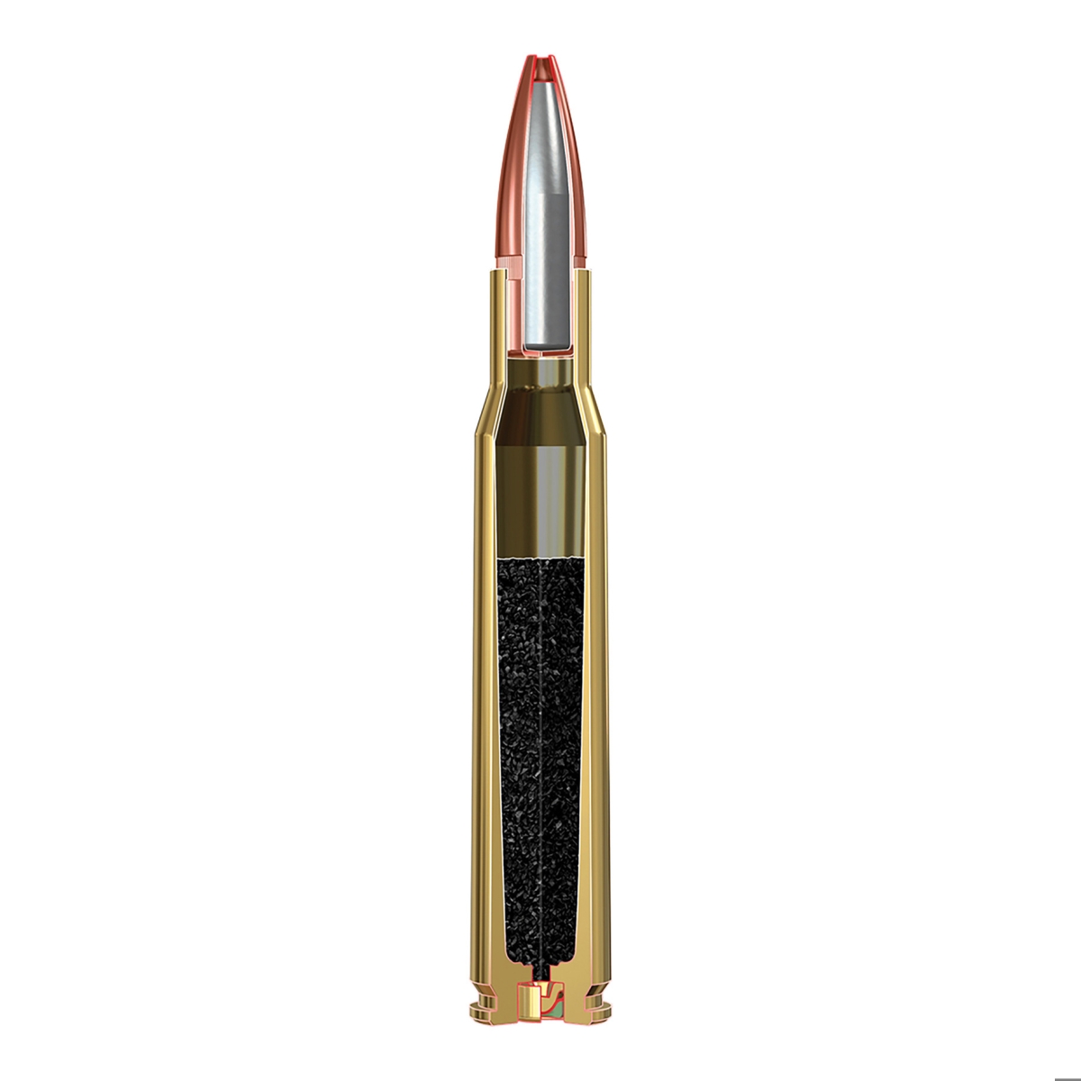 La pointe creuse protégée maintient l'ogive en parfait état lors du chargement et du déchargement de votre carabine, garantissant une précision exceptionnelle. De plus, l'épaisseur de la chemise a été soigneusement étudiée pour une expansion optimale dans toutes les situations, qu'il s'agisse de la distance, de la vitesse ou du type de gibier. En résumé :