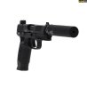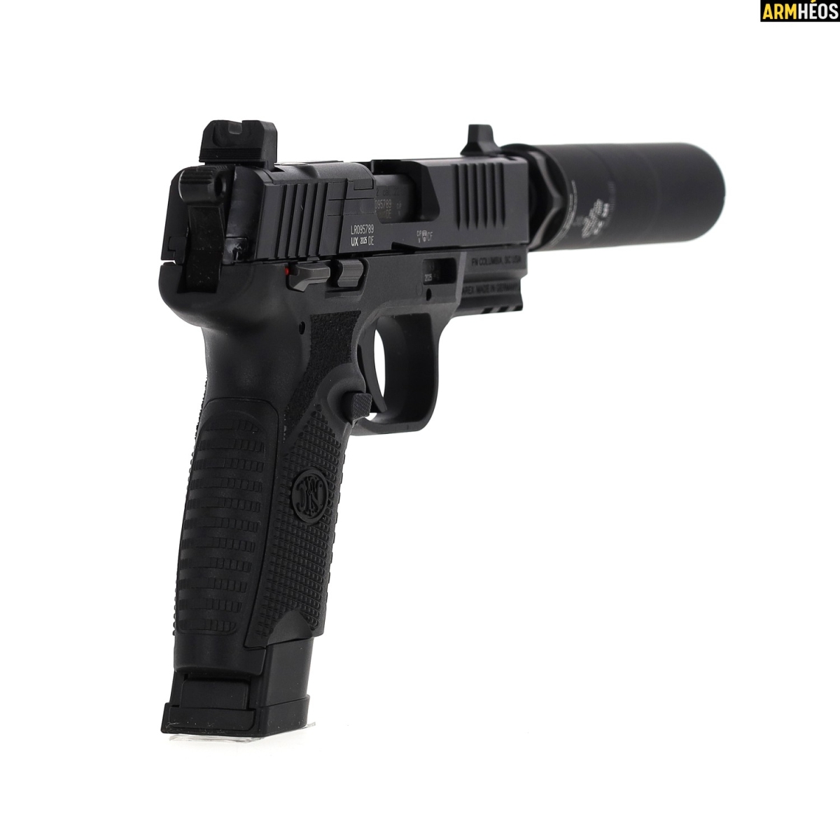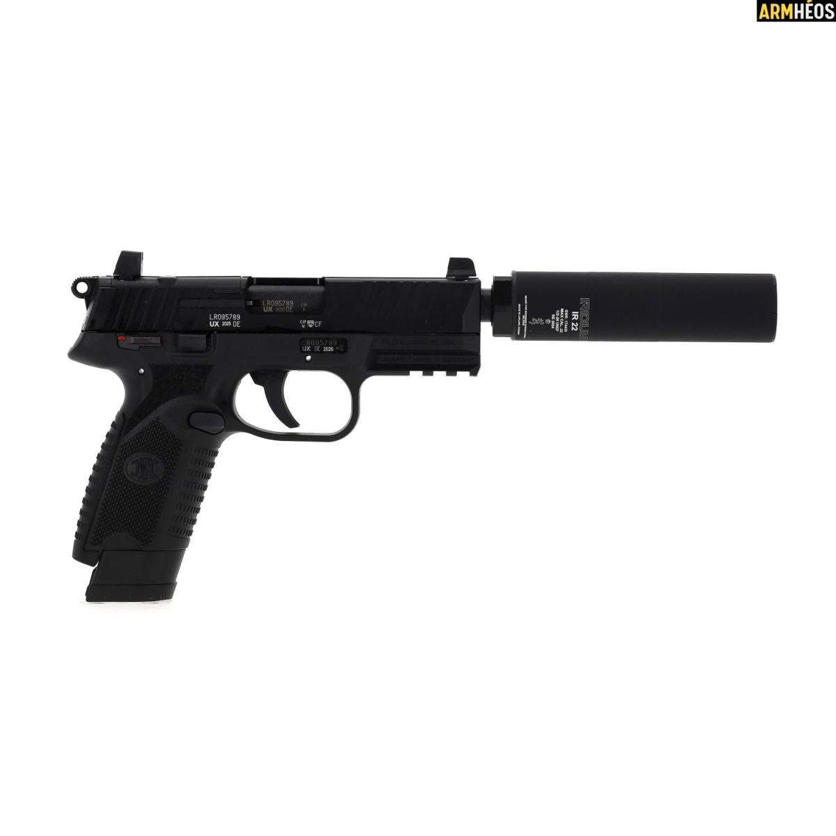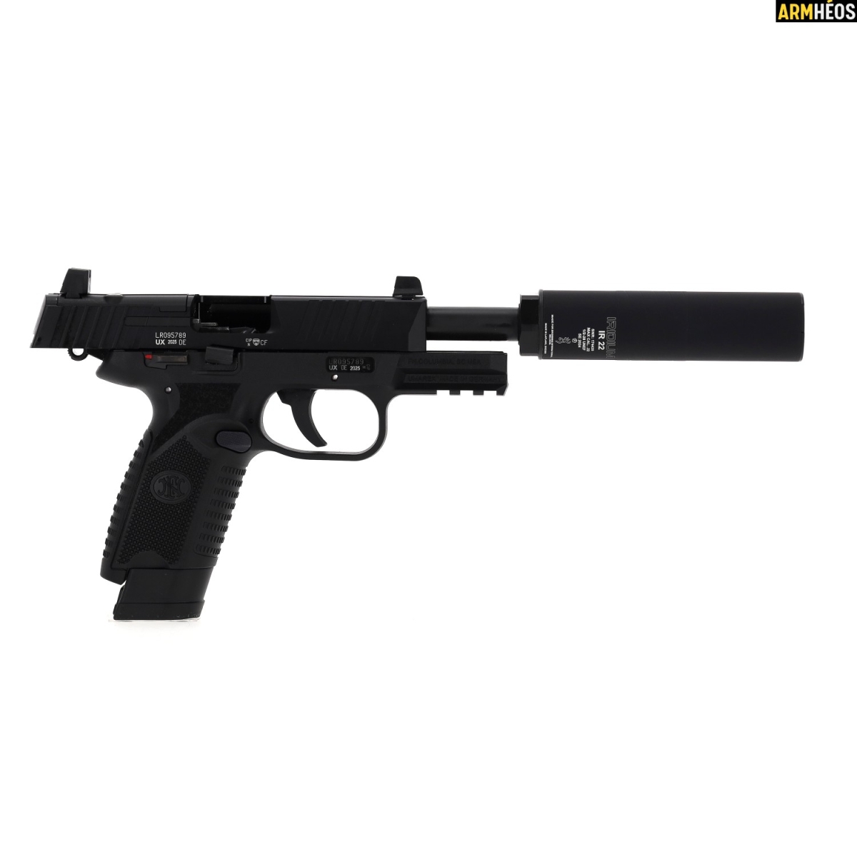 Le FN Herstal 22 LR FN 502 Tactical Noir Optic Ready avec modérateur de son Iridium est un pistolet semi-automatique conçu pour offrir un plaisir de tir de loisir sans se ruiner, avec son look tactique, capable de recevoir pleins d'équipements tels que point rouge, lampe, réducteur de son, etc. C'est une plateforme à chien externe, en simple action. La détente est légère et franche.
