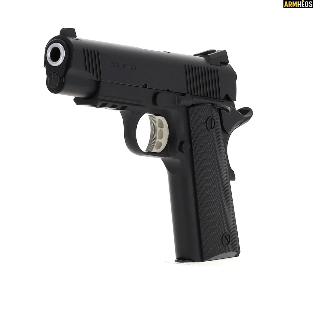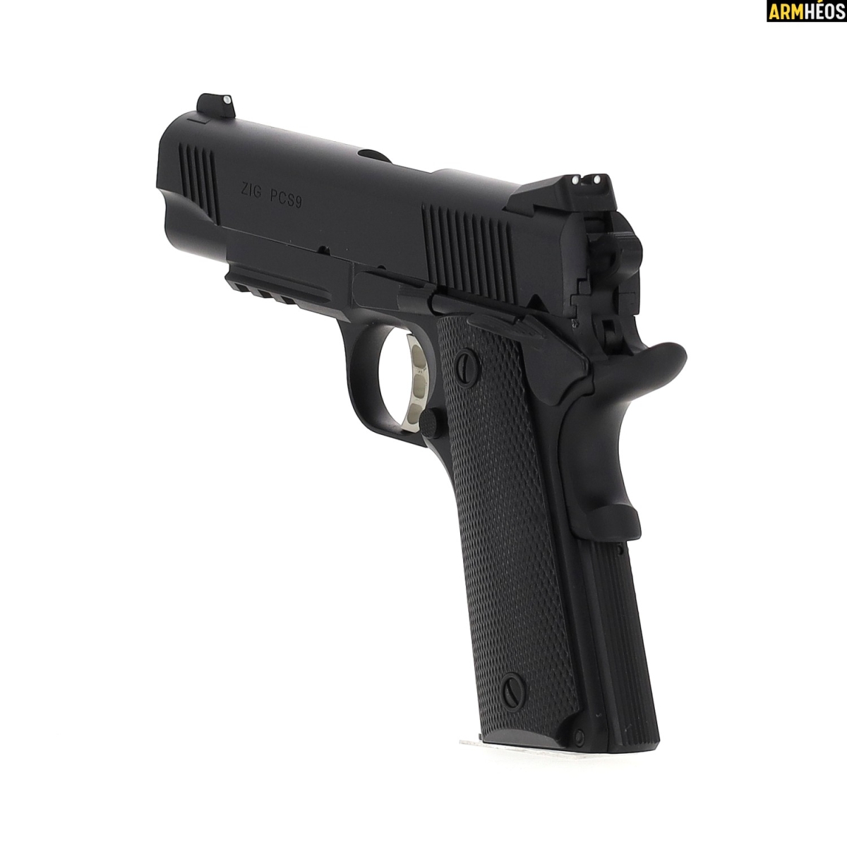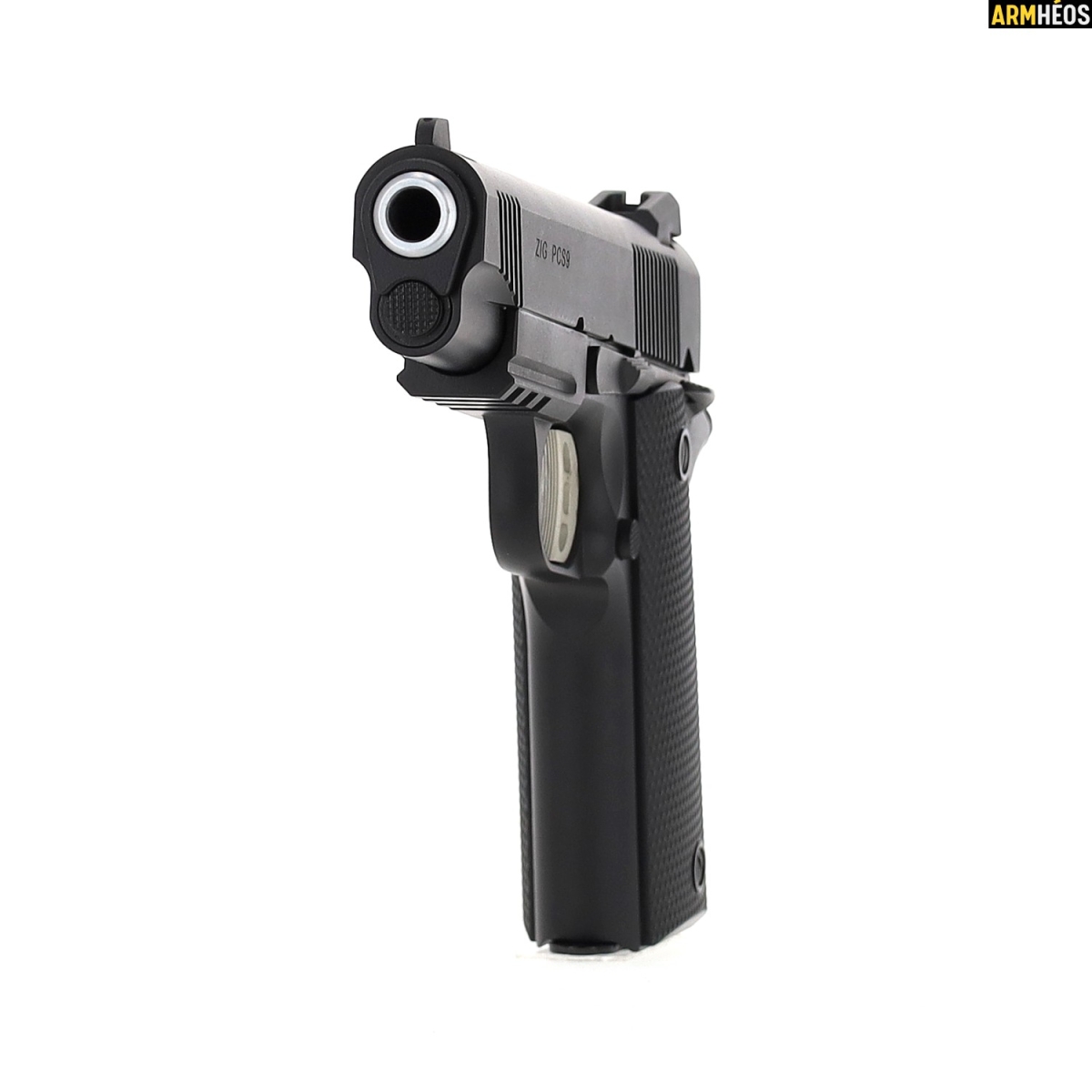 Le ZIG 1911 PCS est une version compacte du célèbre 1911 Commander, modernisé avec des améliorations notables. Son rail Picatinny permet l'ajout d'accessoires comme une lampe ou un laser, tandis que sa construction en acier garantit robustesse et fiabilité.