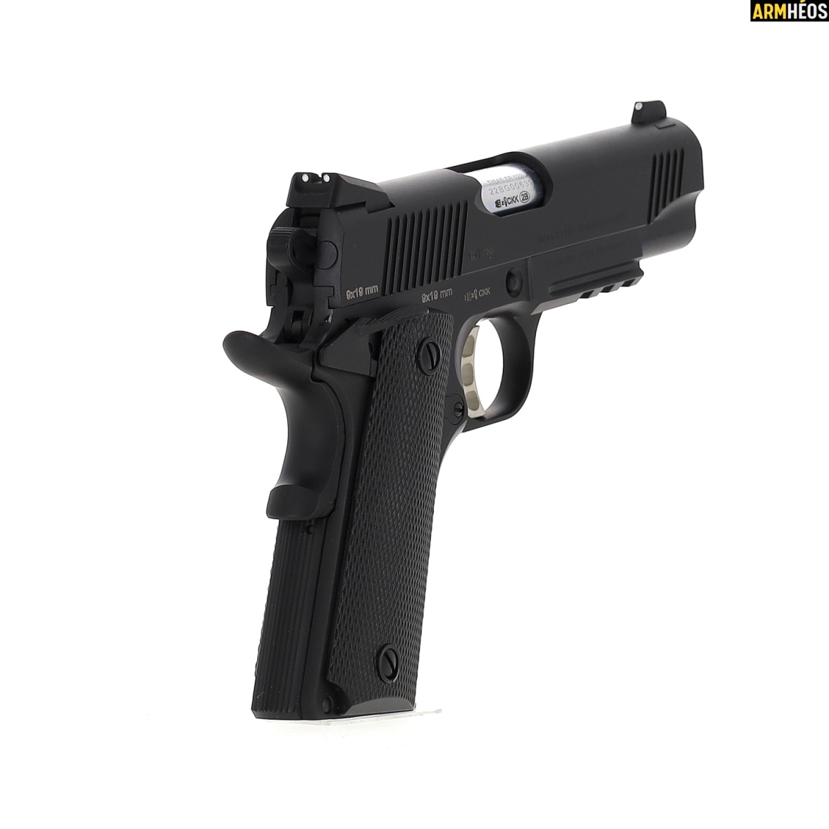 Ce modèle reste fidèle aux lignes du 1911 Commander tout en offrant une meilleure ergonomie et prise en main. Son rail inférieur facilite l'ajout d'équipements tactiques.