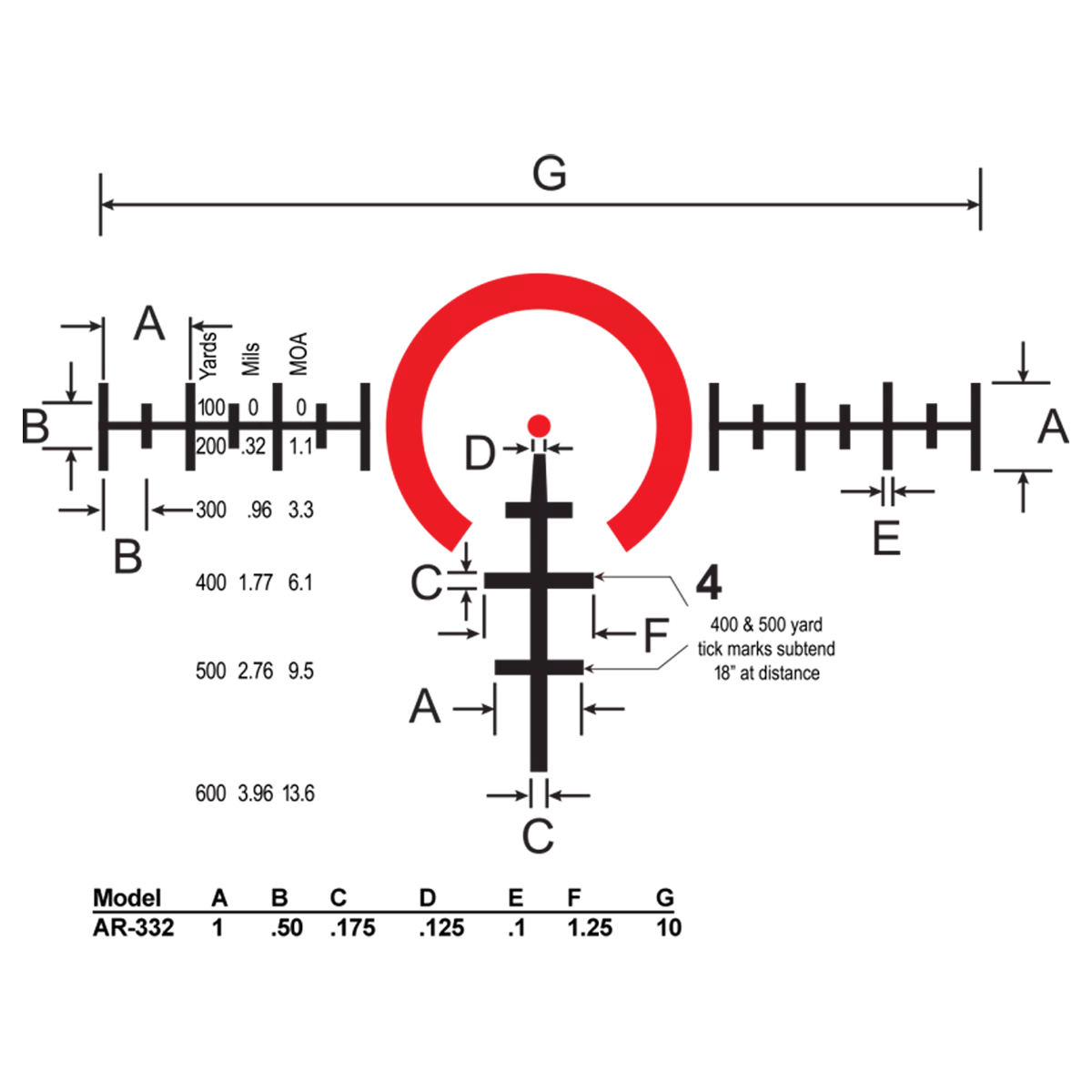 Le réticule Balistique 3XTM est un réticule gravé qui peut être utilisé même si la pile est usée...